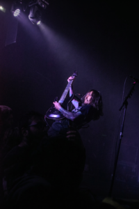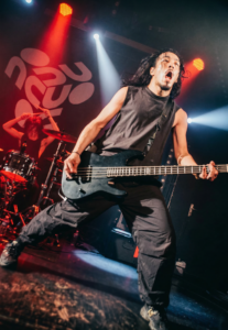 Quand il annonce “Shura” comme un nouveau morceau et qu’il veut voir du headbang, franchement personne se fait prier, c’est hyper efficace, ça rentre tout seul. “Loose Ends” arrive avec le petit moment sympa où il dit que c’est leur première fois à Paris, que la ville est magnifique… mais qu’on est encore trop mous. Résultat immédiat : le pit se réveille enfin.