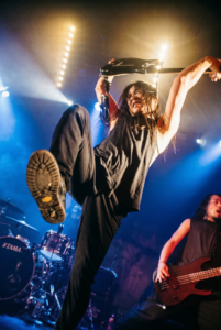 Mais voilà… ça prend, sans vraiment décoller en ce qui me concerne, la fosse elle, est archi receptive. “Relentless Chaos” fait jumper la fosse et lance un premier crowd surf, “I.H.E.” enchaîne avec un circle pit, “Die on the Vine” tente de réveiller tout ça (“vous êtes toujours avec nous ?”), et “Hey Mister” finit avec le discours classique “on est loin de chez nous mais vous êtes la famille”.