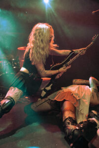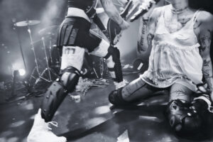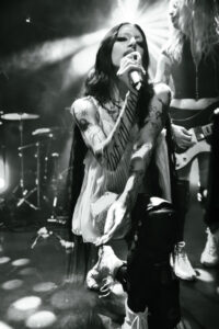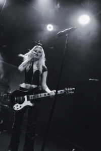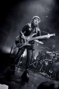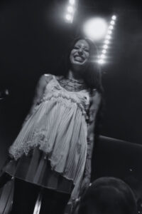 BDSM met tout le monde d’accord, nouveau banger, applaudissements en rythme, paroles hurlées, et moment chaud quand elle et ses musiciennes se grimpent dessus pour une danse lascive. No Mercy déclenche des cris dès les premières notes. Crash, ma préférée, est interprétée de manière absolument parfaite, intense, habitée. XXXhibitionist nous offre une petite chorégraphie en X avec ses deux musiciennes. Lollypop relance la machine, elle nous demande comment on va, espère qu’on se sent vivants, et on lui prouve que oui. Hellhound en duo avec Jeyden crée un joli moment de fusion. Et enfin Pray to Me : elle nous fait nous asseoir, la guitariste nous provoque, puis d’un coup tout le monde jump. Explosion finale. Elle présente son groupe comme sa famille, nous remercie chaleureusement.
