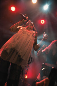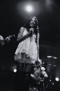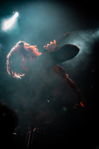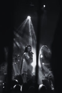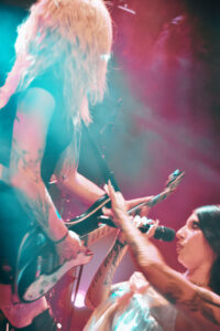 BDSM seals the deal, instant new banger. The whole room claps in rhythm, screams every lyric, and things get heated when she and her musicians climb all over each other for a sultry little dance break. No Mercy triggers screams from the very first notes. Crash, my personal favorite, is delivered flawlessly, intense, fully embodied, almost overwhelming. XXXhibitionist comes with a slick little X-shaped choreography with her two musicians. Lollypop kicks the energy back up; she asks how we’re doing, says she hopes we feel alive, and we prove it loud and clear. Hellhound, performed as a duet with Jeyden, feels electric, the two of them feeding off each other perfectly. And finally Pray to Me: she makes us sit down, the guitarist teasing and hyping us up, and then out of nowhere, jump. Final explosion. She introduces her band one by one, calls them her family, thanks us with real warmth.
