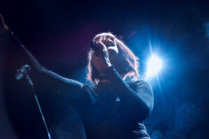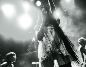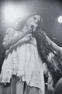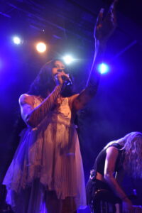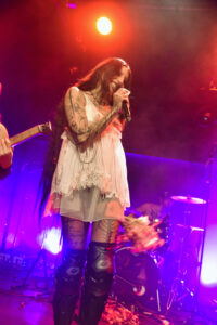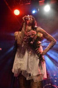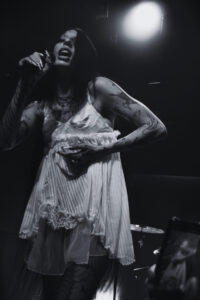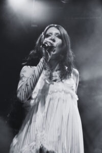 Les morceaux issus de And You Who Drowned in the Grief of a Golden Thing installent une atmosphère dense, presque hypnotique. On est pris dedans, comme dans une spirale. Par moments, la salle devient presque silencieuse, absorbée. Et puis elle casse cette noirceur avec une petite blague, notamment quand elle raconte que Devotion est la chanson préférée de son chien qui hurle à chaque écoute, petit moment drôle qui détend tout le monde et montre une autre facette d’elle.