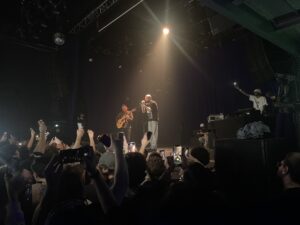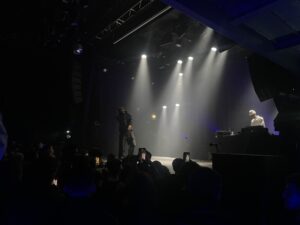 When Olso kicks in, Ando steps up with his acoustic guitar. The lights dim, phones light up, and the whole venue is locked into a moment of pure magic. Django forms a heart with his hands, and the crowd instantly mirrors it. Goosebumps.