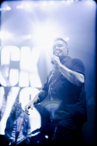 Pour un groupe formé il y a seulement 2 ans comme Haywire, l’opportunité de se produire dans des salles de plusieurs milliers de personnes comme ce soir est presque inespéré. Mais avec leur très intéressant premier album CONDITIONNED FOR DEMOLITION (2024) et leurs origines Bostonienne, c’est finalement presque naturellement qu’on les retrouve en première partie ce soir. Le groupe dispose de 30 minutes pour convaincre un public qui, dans la quasi-totalité, ne les connait pas. Après quelques échauffements de voix a capella sur Sweet Caroline, on entre dans le vif du sujet avec le morceau Haywire, qui sonne comme un manifeste. Et la recette du groupe est la suivante : un hardcore brut avec des influences Oi !, qui peut rappeler Slapshot. Et dans la tradition des groupes de Boston, le groupe assume leur aspect viril et agressif et la joue même second degré avec la reprise de Boys Don’t Cry des Cure. Malgré cette agressivité, la musique du groupe sonne nette et moderne, en tout cas suffisamment pour que le public se prenne au jeu. En trente minutes, le groupe a largement rempli sa tâche qui semblait pourtant ardue pour si jeune groupe. On attend désormais 2026 et un nouvel album dont on a pu entendre un premier morceau, That’s Life. A suivre !
