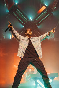 21h15. Le moment tant attendu arrive. Les premières notes de TANZNEID déclenchent une explosion immédiate dans la foule. Rideau qui tombe, pyrotechnie, public déjà en fusion : Electric Callboy ne fait pas les choses à moitié. Le groupe enchaîne sans respirer avec Still Waiting et Tekkno Train, offrant un début de concert tout simplement euphorique. Un rapide regard vers les gradins suffit à confirmer l’ampleur du phénomène : même les sièges sont debout et en mouvement.