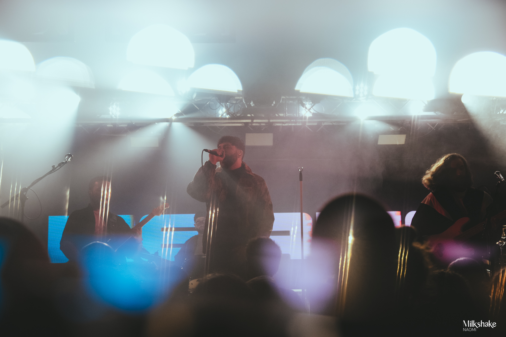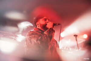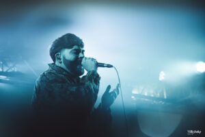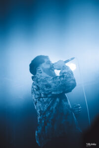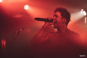We’re starting strong when the room plunged into darkness as the intro set an intense tone. Then, Tristan, Niels, Thibaud, Antoine, and Clem stormed the stage, kicking off their set with “Chimera“. From the first note, the energy in the room skyrocketed. We were locked into their performance. By the second song, “Sapiens“, the crowd was already wild, launching into their first wall of death of the night.