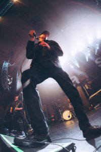À 19h, 156/Silence ouvre la soirée pour sa toute première venue en Europe, et donc à Paris.Le groupe de Pittsburgh était attendu après le succès de “People Watching”, et ils n’ont clairement pas déçu. Dès les premiers morceaux, la brutalité est au rendez-vous : riffs lourds, ambiance sombre, lumière minimale : tout contribue à installer une atmosphère pesante. Malgré une salle encore en train de se remplir, l’énergie est bien présente, notamment sur “Target Acquired” qui fait immédiatement réagir la fosse avec des pits d’une grande intensité. Une bonne partie du public reprend également “Better Written Villain” en chœur, preuve de l’impact du groupe. La présence scénique de Jack Murray est particulièrement marquante : imposant, intense, il capte toute l’attention. Une première partie solide qui lance parfaitement la soirée.