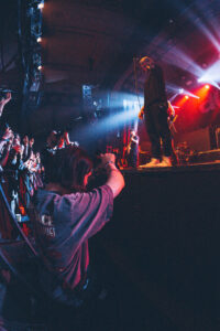 Le relais est ensuite pris par Acres, déjà vus en 2024 en ouverture de The Plot In You à Londres. Le groupe anglais propose un metalcore moderne, porté par des refrains accrocheurs qui restent en tête dès la première écoute. L’ambiance monte encore d’un cran, les corps commencent à bouger davantage, les sauts se multiplient, et la fosse s’anime vraiment. Leur set apporte un équilibre parfait entre mélodie et énergie, rendant la transition fluide après la violence de l’ouverture. Une performance efficace qui confirme leur capacité à séduire en live.