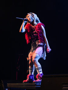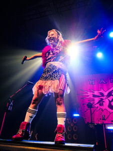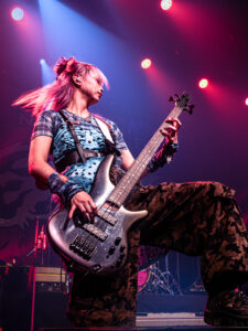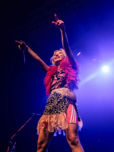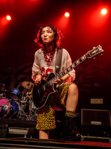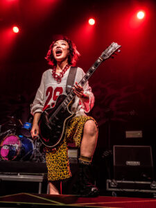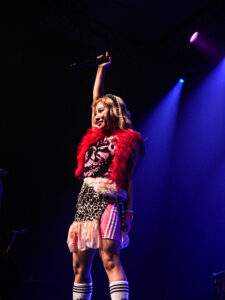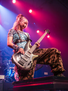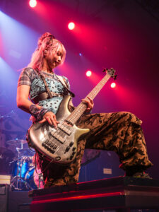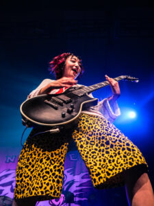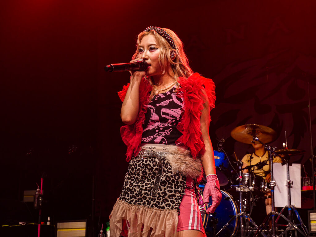 La scène, inondée de lumières roses, magnifie la tenue pastel de la chanteuse, dont les screams percutants contrastent avec sa gestuelle expressive, parfois presque kawaii. Pendant les trois premiers titres, les photographes sont aux anges : le groupe s’approche, grimace, joue avec les objectifs. On sent une envie réelle de partager ce moment.