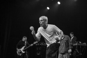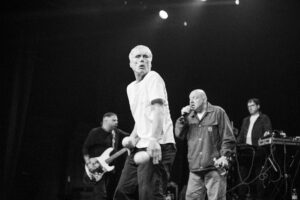 Après une petite intro entre pénombre et stroboscopes, on se prend direct « Kinky Afro » dans les dents, de quoi lancer magnifiquement la soirée. Sur scène, c’est plutôt calme, mais c’est sans compter sur le mythique Bez. Toujours aussi iconique, l’homme aux maracas nous livre ses mouvements de danse qui ont forgé sa légende. Fun fact de la soirée : lorsqu’il remarque mon maillot de Man U, il se dirige vers moi entre deux chansons, me check en hurlant à la foule que je suis le mec le plus cool de la soirée car je porte le meilleur maillot.