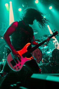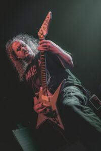 The rhythm immediately heats things up in the pit. The songs come one after another at breakneck speed, leaving almost no respite. “What a Horrible Night to Have a Curse” (Castlevania fans will get the reference) instantly triggers the first serious mosh pits, while “Nightbringers” and “Everything Went Black” cause organized chaos, or maybe not.