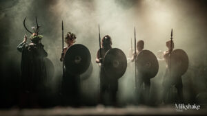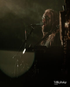 The concert continued to pull us into this mystical world, with tracks like “Asja” and “Hakkerskaldyr” surrounding us in a ceremonial ambiance. The staging was meticulous; every detail mattered. Christopher Juul, in front of his warriors, pounded a staff adorned with antlers with tribal force, creating a connection between the musicians and the audience, as if we were all part of this ancient rite.