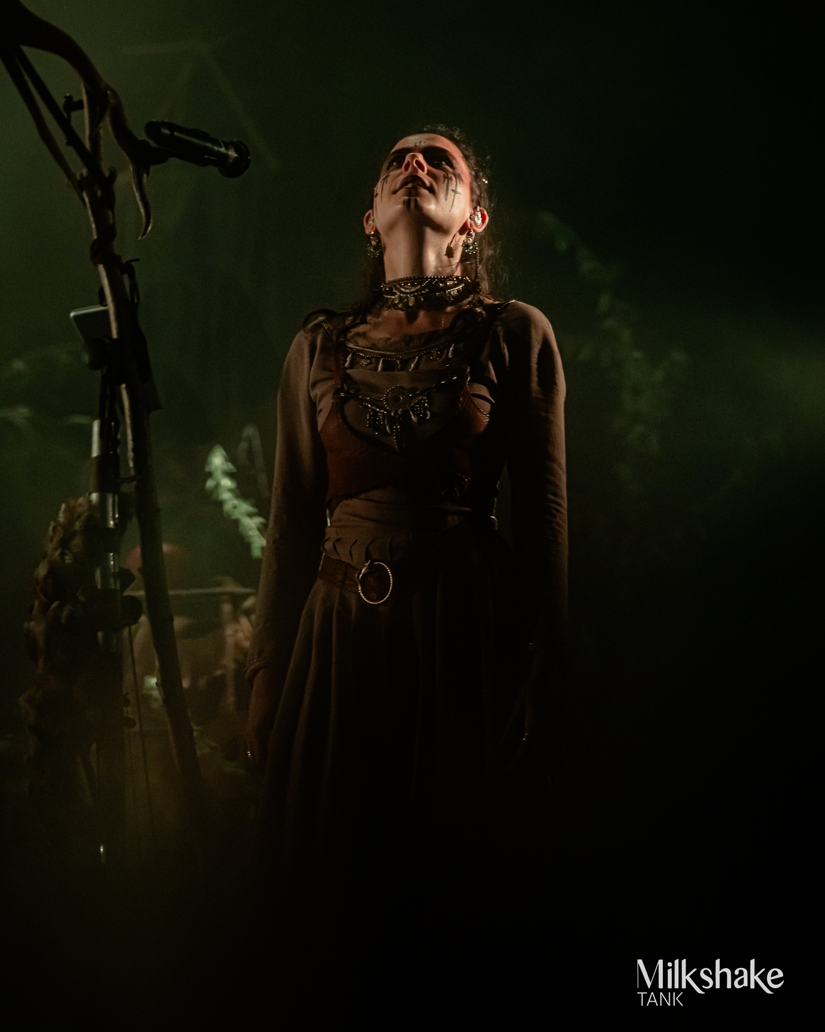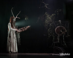 The atmosphere became increasingly immersive with “In Maidjan,” where percussion mixed with hypnotic chants. The introduction of unfamiliar instruments and onstage dances heightened the ritualistic vibe, with every note awakening something primal within us. Maria Franz, with her pure and powerful voice, captivated the audience, radiating an extraordinary charisma.