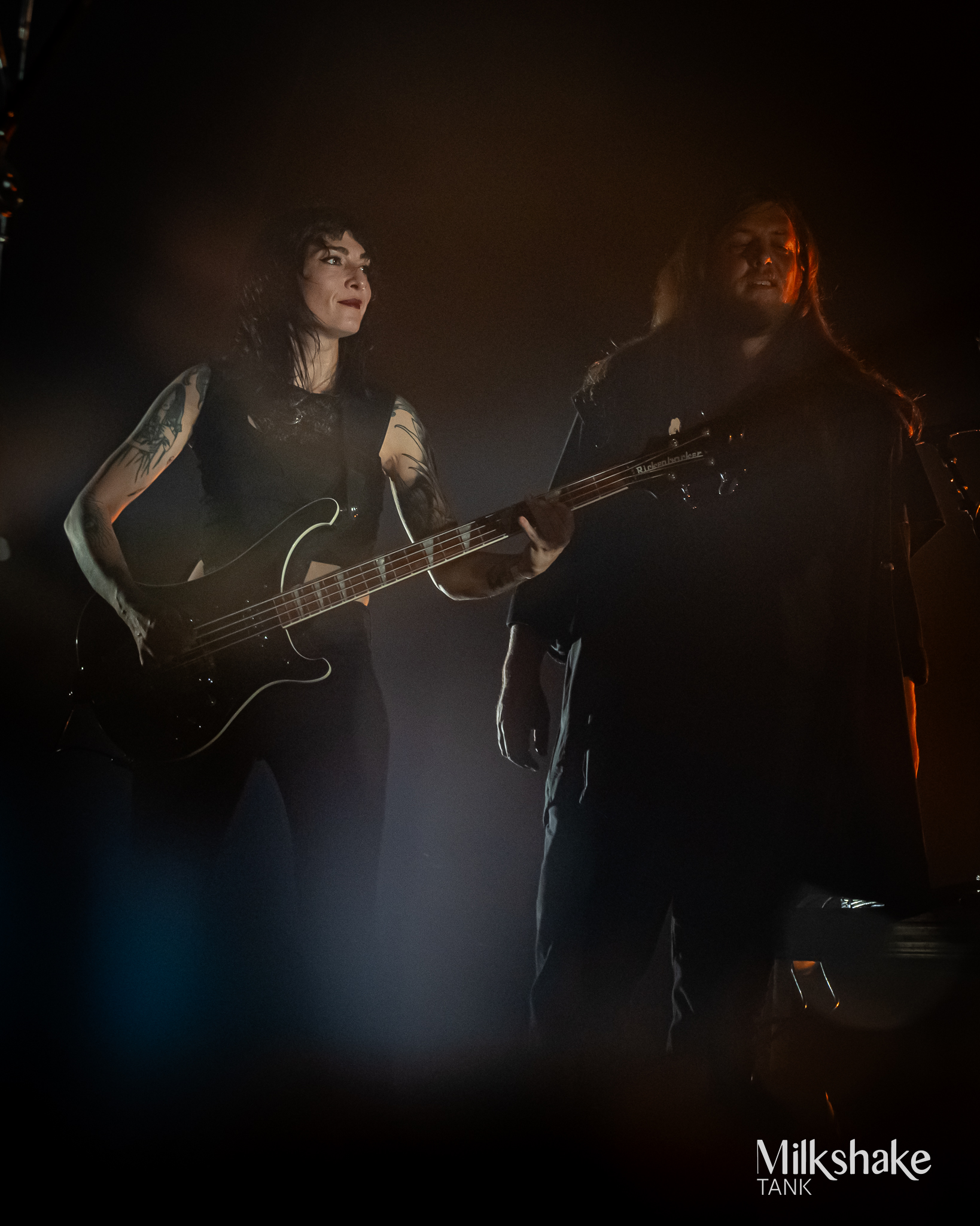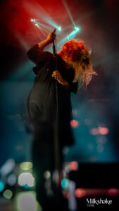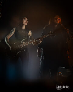 But it was with “Götterdämmerung” that the intensity went up a notch. The band finally revealed themselves by pulling back their hoods, unveiling a stage full of musicians, and the energy exploded. The crowd reacted enthusiastically, headbanging to the music, especially when faster-paced tracks like “Ship on Fire” filled the room. The bassist, in particular, stood out with impressive charisma, commanding attention with her stage presence.