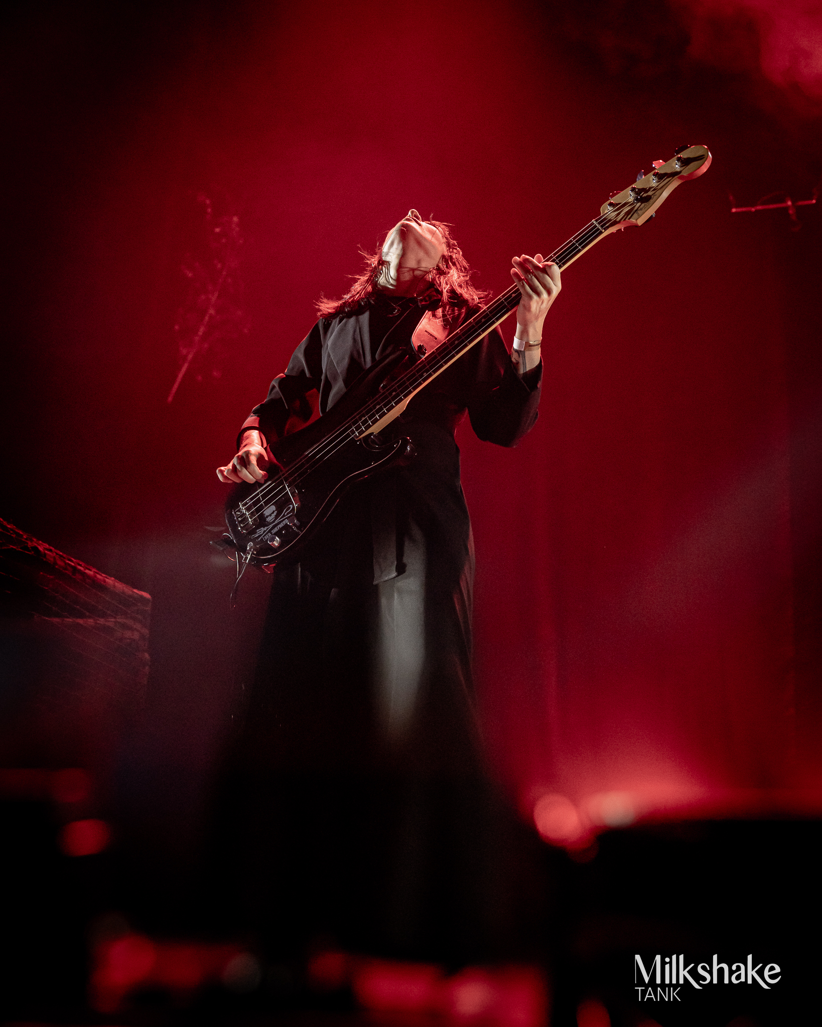 Zeal & Ardor kicked things off with a mysterious setup, with Manuel Gagneux and his crew dressed in black, hoods up, and the drum kit elevated on stage. The first track, “The Bird, the Lion and the Wild Kin,” immediately set a dark and enigmatic tone, blending spirituality with rebellion in the first notes.
