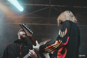 On ‘Bleed 4 You’, Lochie invited the crowd to stand up and lift fans onto their shoulders, creating an even more electric atmosphere. At the end of ‘Double-Edge Demise‘, Sabian, one of the guitarists, approached the barrier to allow a fan named Colwyn to play guitar, giving him a magical moment.