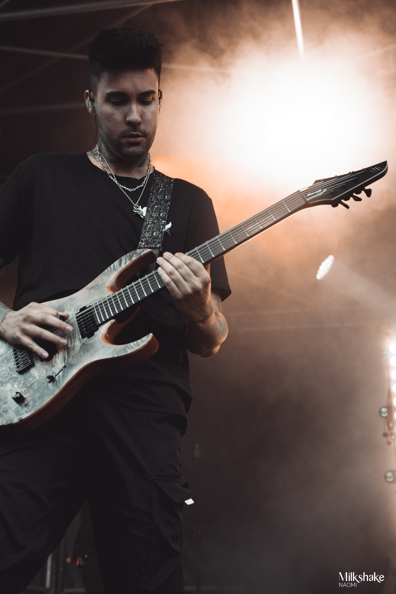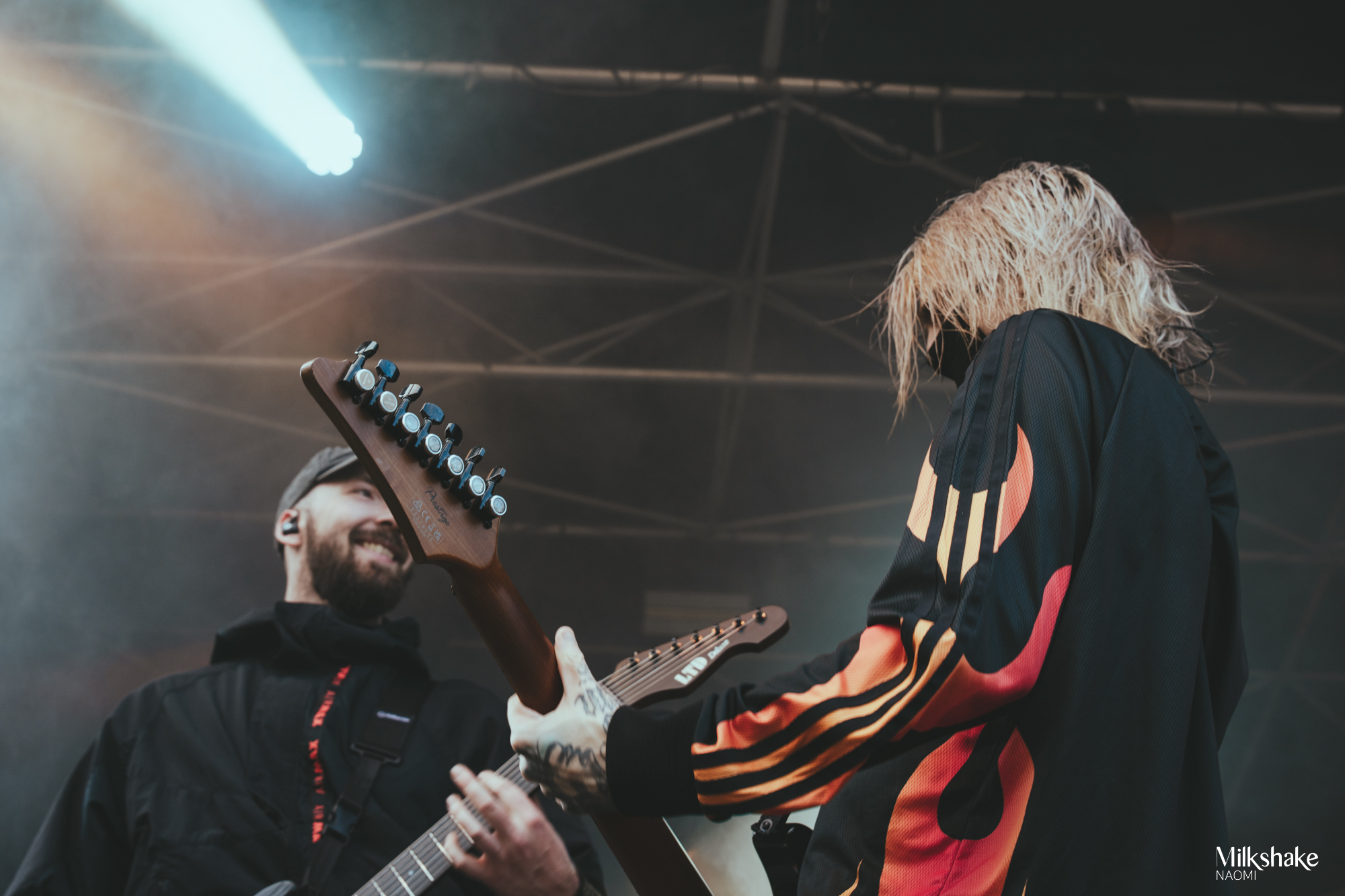 Unfortunately, due to this last-minute addition to the lineup, a crucial member was missing: Steeves, the bassist, who couldn’t be present. However, this did not in any way hinder the band’s momentum, as they delivered all their usual energy on stage. I must admit, seeing Ten56, known for their intense use of strobe lights, perform in broad daylight is always a bit disorienting at first, but this detail quickly fades away.