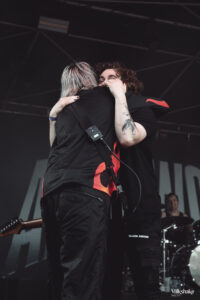 Sur “Bleed 4 You“, Lochie a invité le public à se lever en portant des fans sur leurs épaules, créant ainsi une ambiance encore plus électrique. À la fin de “Double-Edge Demise“, Sabian, l’un des guitaristes, s’est approché de la barrière pour permettre à un fan, Colwyn, de jouer de la guitare, offrant un moment magique à ce dernier.
