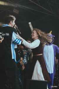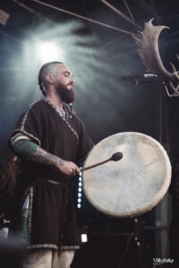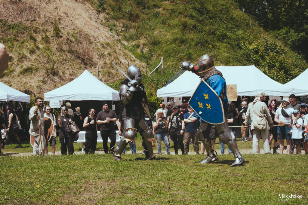 Arrivés au festival, nous sommes plongés dans une atmosphère médiévale dès le départ. Elle a été facilitée par le fait que le lieu est un château datant d’entre le XIe et XIIe siècle. Mais ce n’est pas tout. Les organisateurs vont encore plus loin en créant des décors et des activités d’époque, des combats de chevaliers à un marché artisanal, offrant quelque chose pour tous les goûts. Entre chaque set, nous sommes invités à participer à ces nombreuses activités : des combats épiques, des spectacles d’hypnotiseurs, des cracheurs de feu, et bien plus encore. C’est une immersion totale. Certains visiteurs se sont même pris au jeu des costumes, ce qui apporte une atmosphère joyeuse même dans les mosh pits.