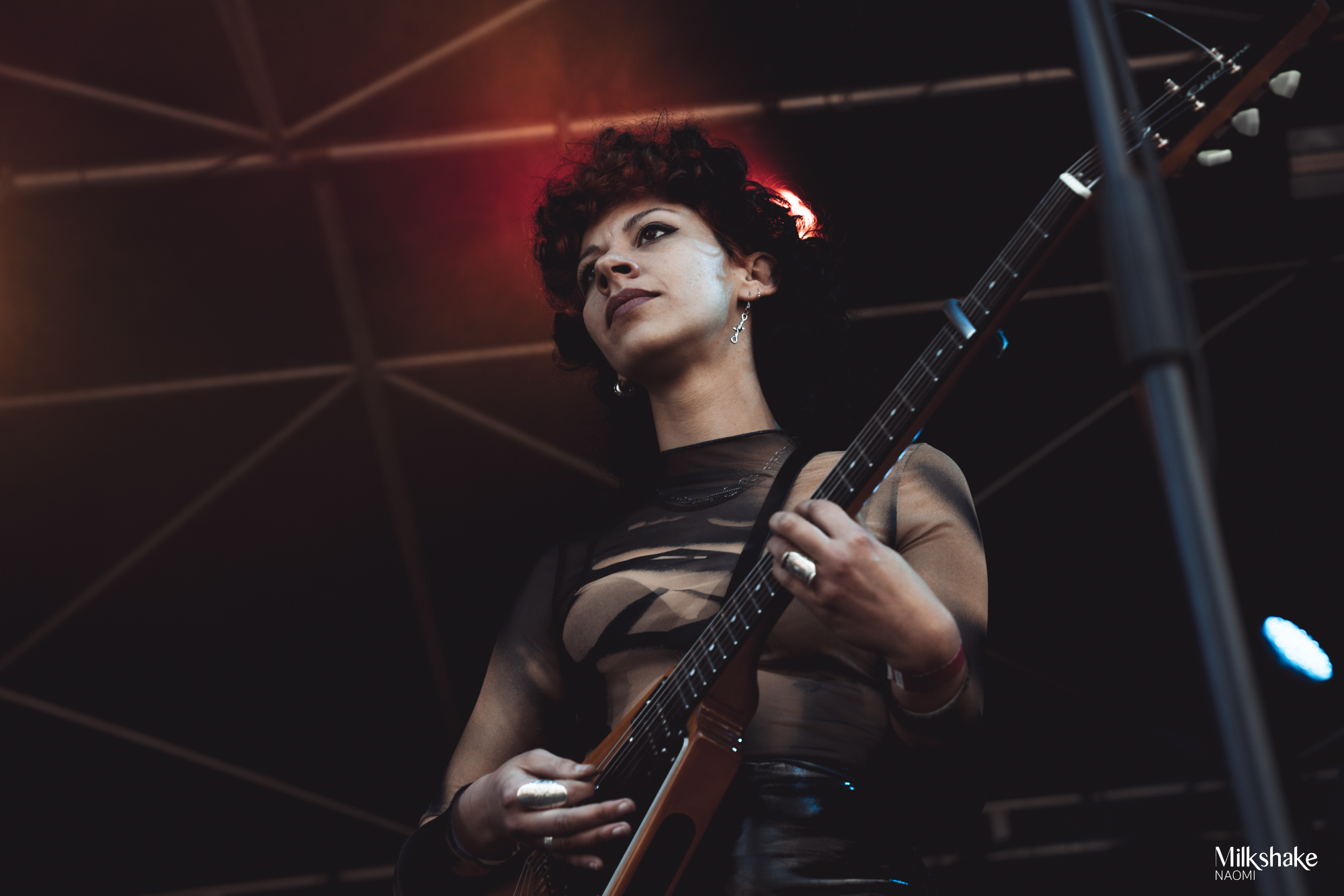 Le set se poursuit sans retour dans les oreillettes, et bien que quelques moments de décalage rythmique se fassent sentir, notamment lors de très brèves pauses pour réajuster le tempo, rien ne vient entacher l’enthousiasme du public. Un applaudissement particulier est mérité pour Eleni à la batterie, qui a dû jouer tout le set sans entendre autre chose que sa propre batterie, ainsi que pour le manager du groupe qui est resté à ses côtés, servant de métronome humain.