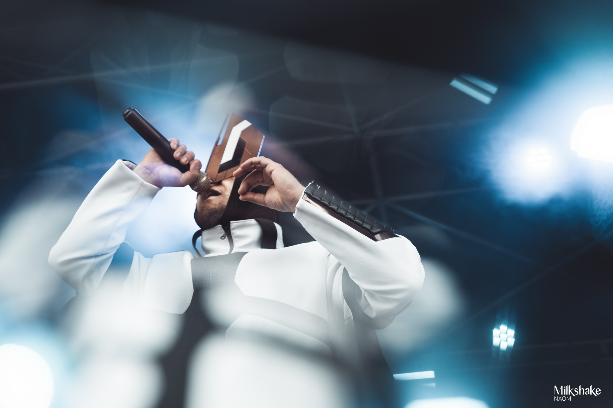 They took the stage starting with one of their most famous tracks, ‘Darkbeat‘. However, very quickly, a problem became evident: the backing track, instruments, and vocals all seemed out of sync. There appeared to be issues with synchronization and sound feedback, creating palpable tension on stage. The audience, however, remained patient and understanding.