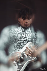 Une très belle découverte pour moi cette année ont été Vestige. Ils ont ouvert pour Celeste le mois dernier et m’ont immédiatement séduite. C’est un tout nouveau groupe qui a récemment sorti leur premier single. Et c’était un plaisir de les retrouver sur scène au Kave Fest. Malgré quelques petits soucis techniques en début de set, ils ont brillamment repris leur performance. Leur musique reste captivante, même en plein jour, nous transportant pleinement dans leur univers.