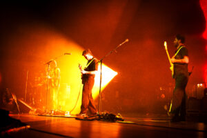 L’orchestre se mêle aux musiciens, les trois voix du groupe se fondent aux instruments, et le tout se mêle à la salle, qui compte énormément d’étrangers suivant le groupe sur la tournée et semblant plus que comblés. Certains spectateurs restent toutefois moins convaincus, attendant patiemment la partie plus psyché-heavy-garage du show.