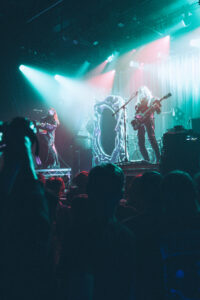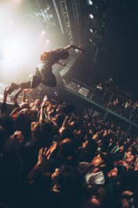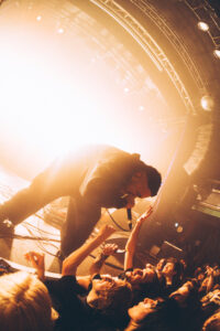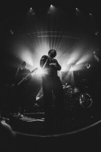 Dance on My Skin c’est le chaos ça jump tellement fort en hurlant, Two Way Mirror marque un moment suspendu “Paris comment ça va? C’est fou d’être en headline ici on vous aime hands up” et toute la salle balaie l’air de droite à gauche émotion pure, The Things They Believe arrive avec une consigne claire circle pit immédiat tout le monde tourne poing en l’air, Heavy Is the Head That Falls With the Weight of a Thousand Thoughts transforme la salle en ciel étoilé téléphones levés applaudissements en rythme et le morceau repose sur le lead singer mais le guitariste prouve encore qu’il a une voix incroyable.