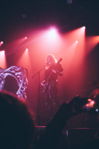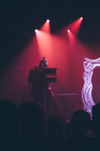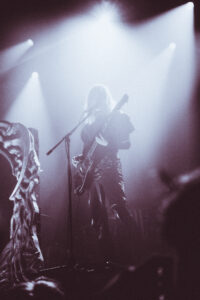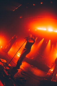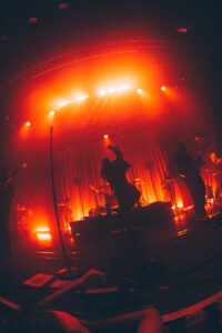 Sacrifice opens the set with a carefully crafted visual presentation: dual synths elevated on risers, the guitarist positioned on another platform, a central mirror, and a frontman dressed head-to-toe in leather, white-painted face and black makeup. The vocals are a bit surprising at first, then Charlotte, their cover of Kittie, kicks in, and suddenly everything clicks. At that point, the crowd feels wrapped in an introspective bubble. No explosions, no chaos, just a contemplative, almost hypnotic mood. The Mirror closes this dark and elegant journey, and while the audience stays calm, it’s fully locked in. Gentle swaying replaces movement, passive, maybe, but undeniably captivated.