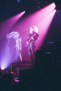 Sacrifice ouvre le set avec une mise en scène léchée double synthé sur estrade guitariste sur une autre miroir central et ce frontman tout de cuir vêtu visage blanc maquillage noir la voix surprend un peu puis arrive Charlotte la reprise de Kittie et là clairement on est sur autre chose le public est comme dans une bulle introspective pas d’explosion pas de chaos mais un mood contemplatif presque hypnotique the mirror clôt ce voyage sombre et élégant le public reste calme mais concentré ça dandine doucement c’est passif mais admiratif.