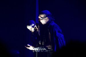 They appear with the mighty “Realm of Endless Misery” off their new 8-tracks necronomicon “Liturgy of Death”. The band has made zero fuss with regard to costumes, they left that to the vocalist. His attire is quite the mismatch to their black jeans and t-shirts, but what a sight: a Satanist pope, dressed in silk, but fresh from the grave with occult symbols in his palms and rotting teeth in his mouth. Bear with me through a quick comparison: With a band like Ghost around (who has its merits) but Mayhem right in front of me, this performance really feels like going back to the roots of, not just metal, but weirdly, authenticity. Costume and “mask” do not hide anything in order to create a character (which also has its merits), they rather seem to allow for what’s beneath to come to the surface: through all the face paint, you can see Attila Csihar mean every word. Every contortion of his face, every serpentine tongue twitch, every oh so tiny hand gesture make his persona come alive. His thoughts, however otherworldly, seem to glimpse through eyes narrowed to mere slits. In similar slits lies, perhaps, the difference between entertainment and art. It’s a show, but this performance feels very distilled, it’s profound, almost personal from the first rows, and therefore true. Or trve, if you prefer. I personally roll my eyes at this term and I certainly have to explore this large topic further, but in any case, what I get to witness tonight is my preferred type of both entertainment AND art. The author might be dead, but I still need a person in front of me offering to connect. Csihar does just that.