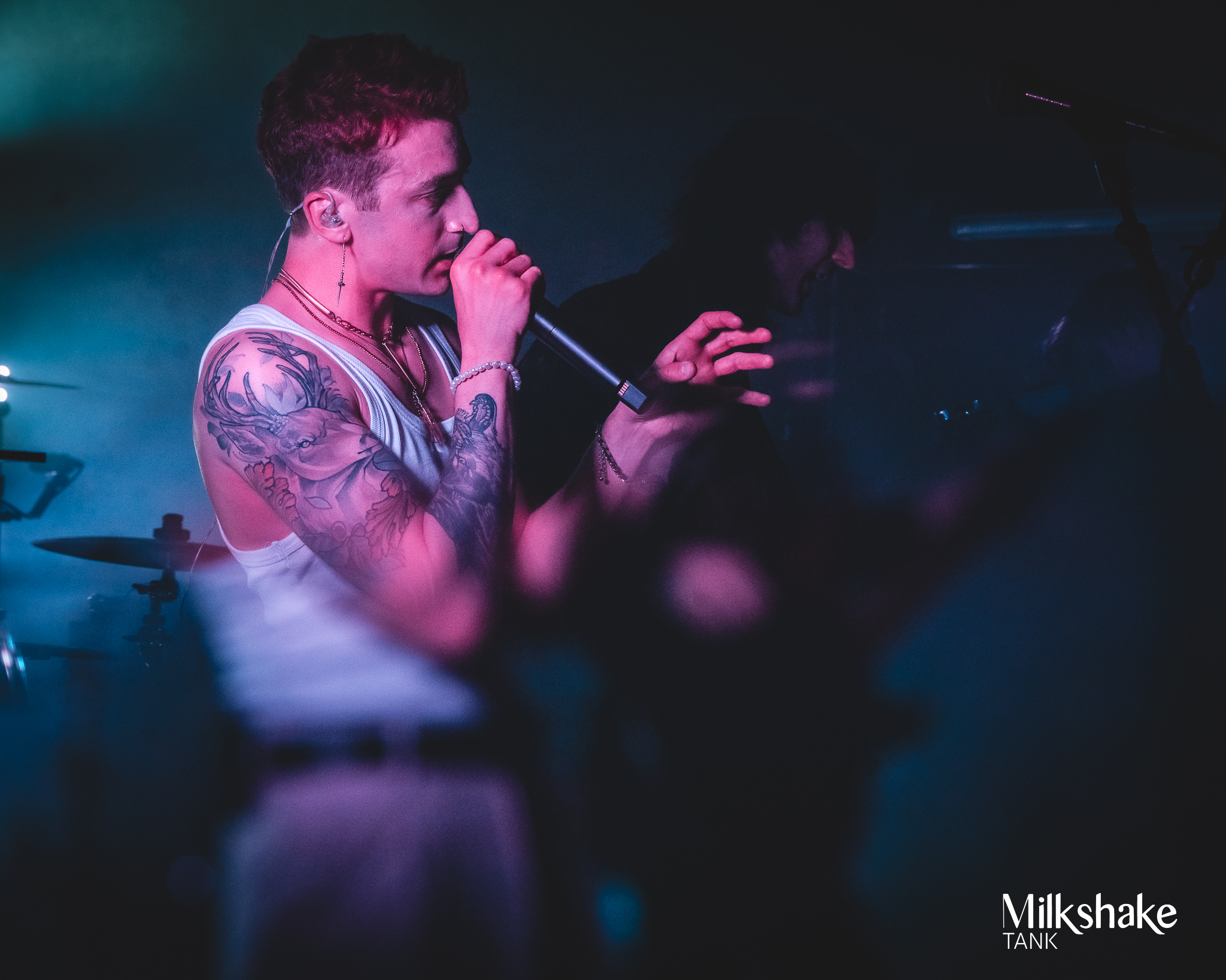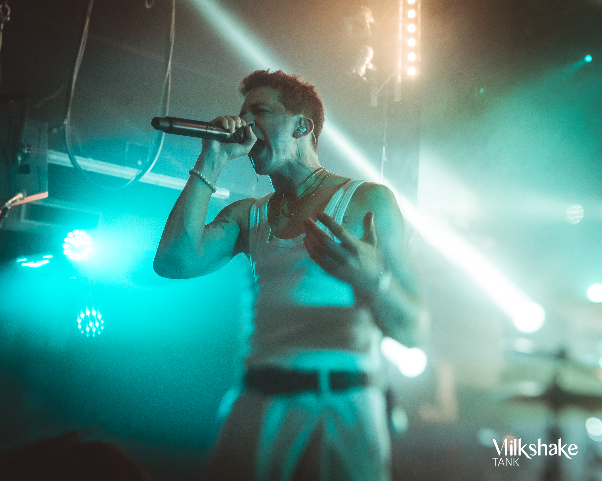 The stage lights up with much more pop colors as the Parisians of Ashen take the stage, led by Clem Richard. The frontman, dressed entirely in white, immediately engages the audience from the first seconds of the track ‘Angel‘ released last year. What truly defines Ashen is the boundless energy of their singer, who can’t stand still and lives each song to the fullest.