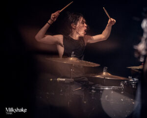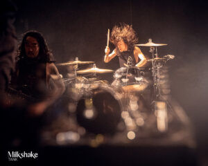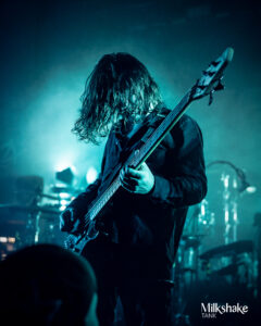 C’est à 21h, devant une salle pleine à craquer, que les lumières s’éteignent pour laisser place aux boss de la soirée. Le batteur apparaît seul, entouré par des halos bleus, un bras levé. L’ambiance est déjà électrique lorsque le reste du groupe débarque pour entamer les premières notes de ‘Prometheus‘.