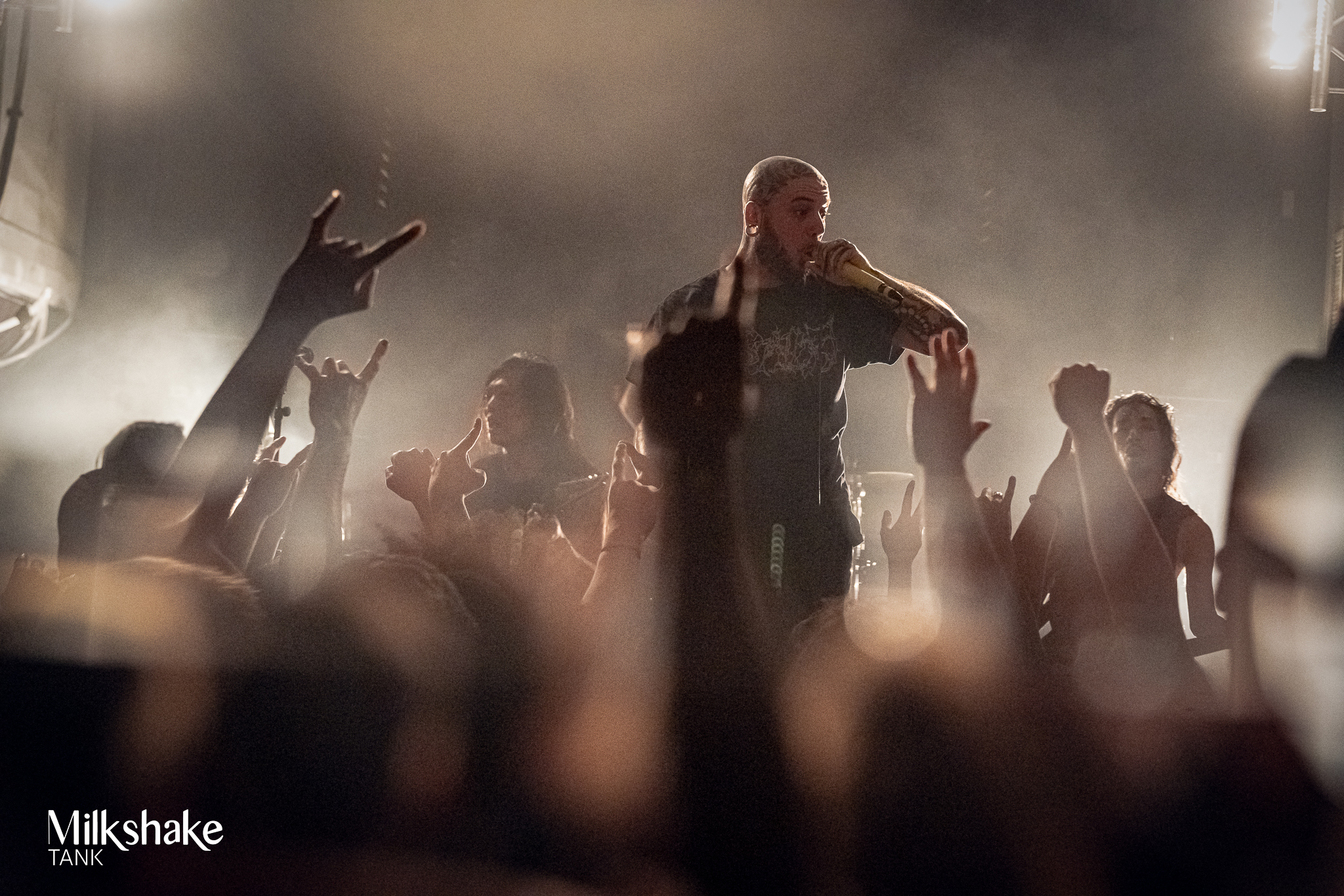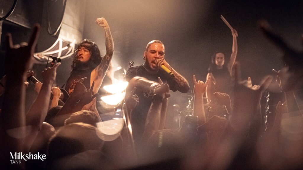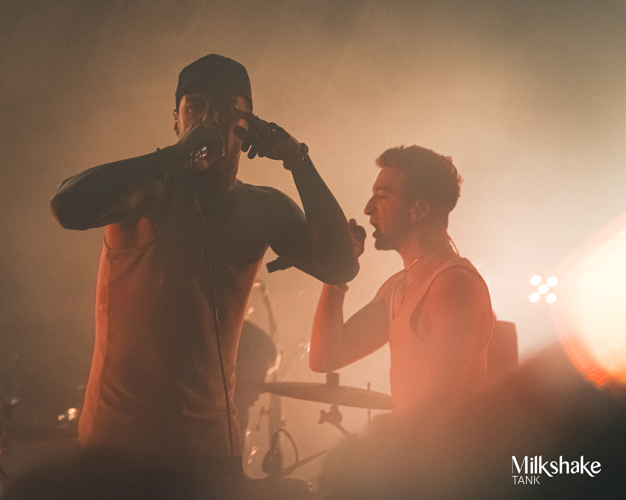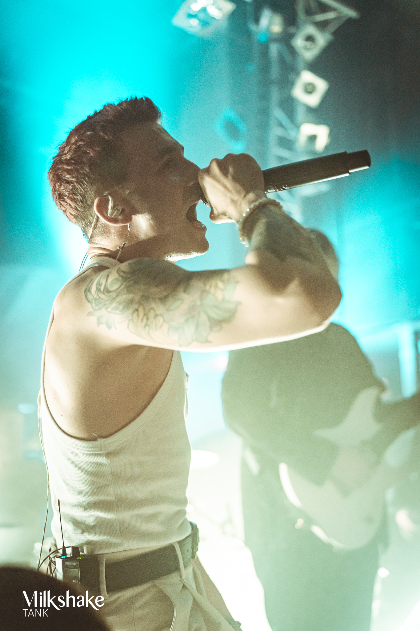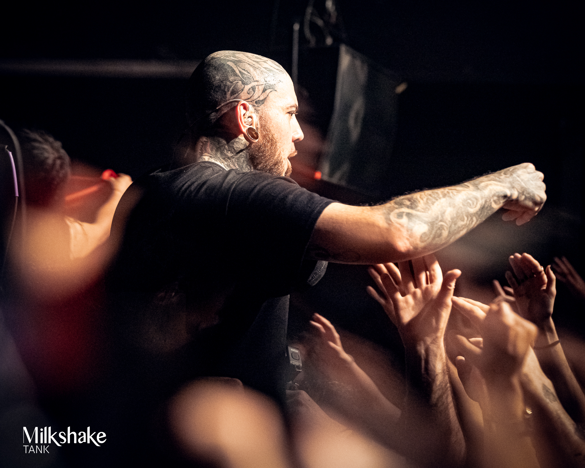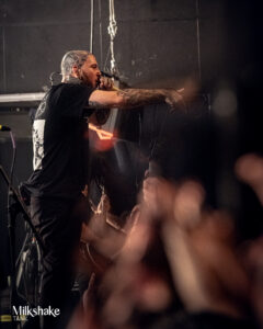 The metalcore band then launches into a set of about ten songs in this electrified atmosphere, including their latest track ‘Sacrifice‘ featuring Aaron Matts of ten56. In a surprise move, Matts takes the stage to perform the single, causing genuine hysteria among the crowd.