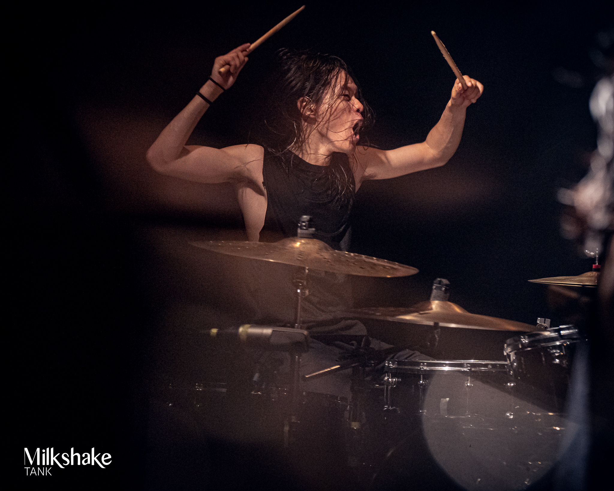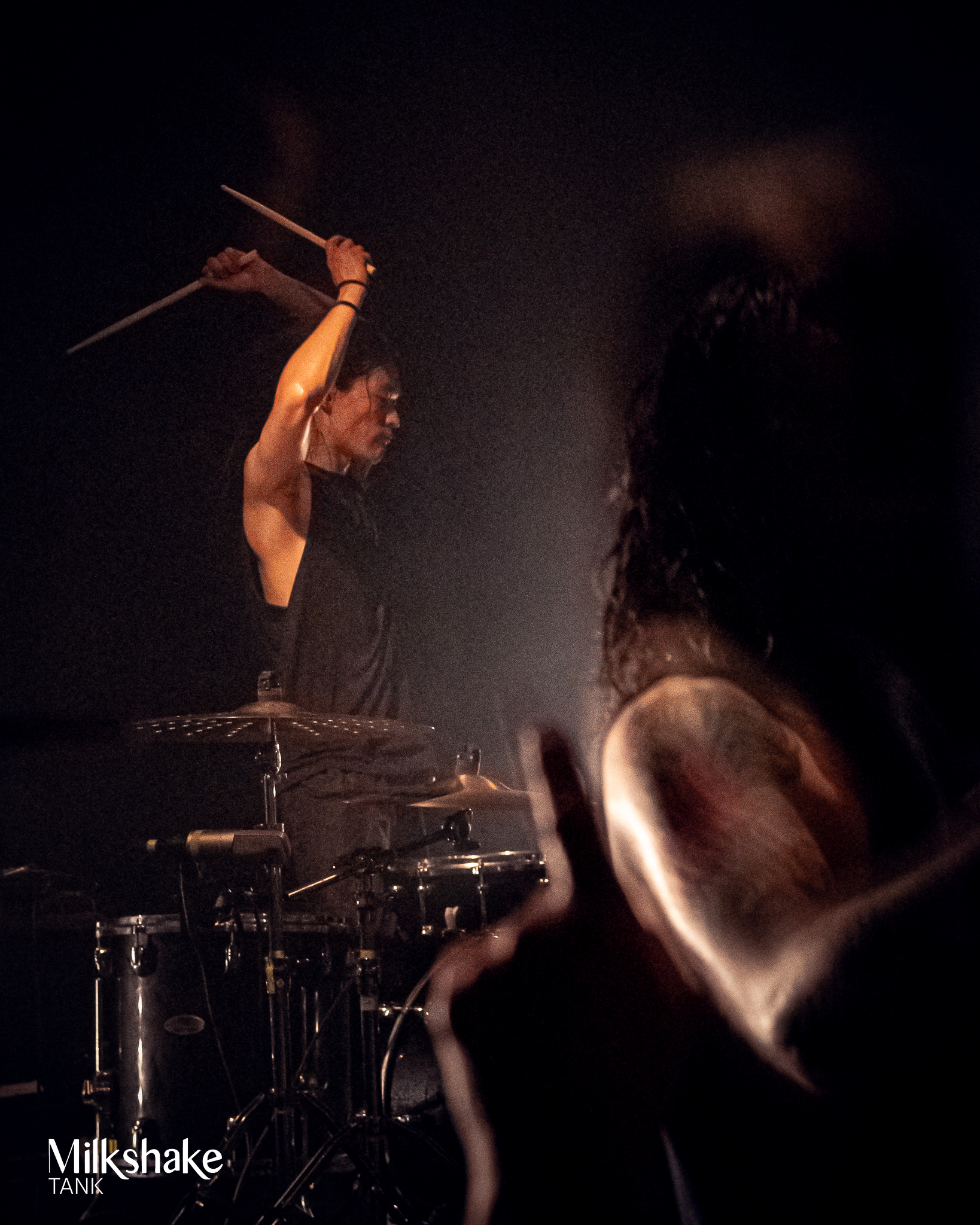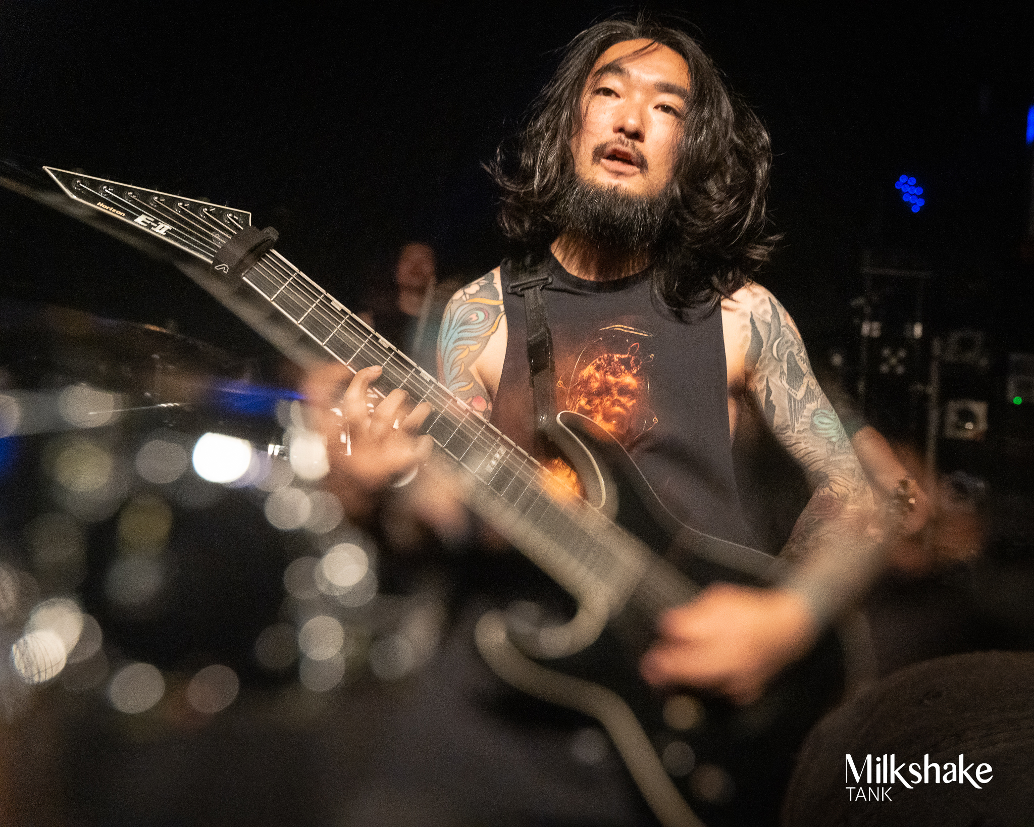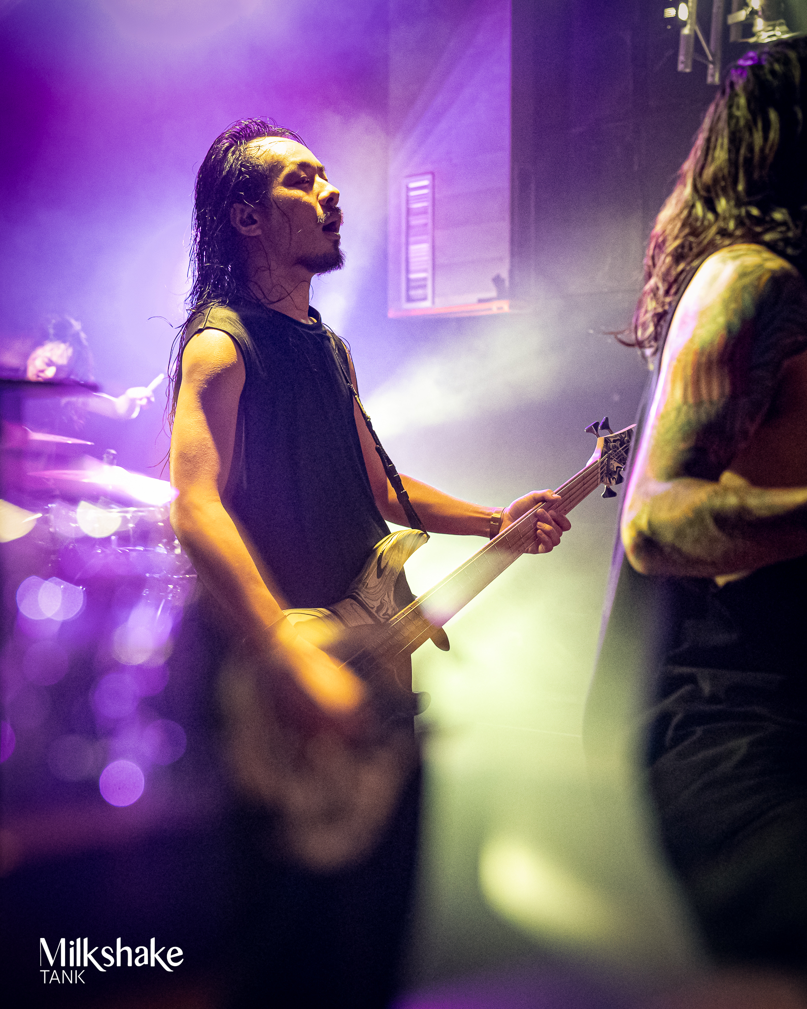 Les douze morceaux de la setlist offrent au public un bel équilibre entre ce qui a fait leur succès depuis leurs débuts (‘Open Water‘, ‘Six Feet Under‘, ‘Machina‘) et leurs nouvelles productions. Les Japonais offrent même au public la découverte en live de leur dernier né, ‘Bludgod‘, au cours duquel ils invitent la foule à scander le refrain en chœur.