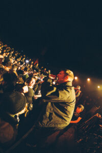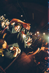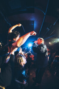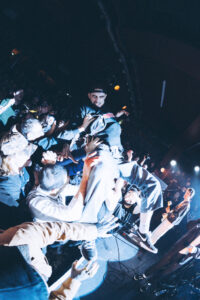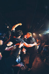 They know. We know. Something special just happened. Ian rallies the rest of the band, already halfway backstage, and brings them out again. And here’s the kicker: not one, but two extra songs. “Ain’t No Flowers” lands with even more weight this time around. The crowd gives whatever’s left in the tank. Then “Do It Faster” kicks in. The stage turns into a living, breathing snapshot, bodies frozen midair, eyes lit up, voices shredded, hands reaching forward. Everyone in the room feels stitched into the same collective mural. The band takes it all in. The crowd lets go completely. You could almost hit pause, step back, and think: This right here, this is a Militarie Gun show.
