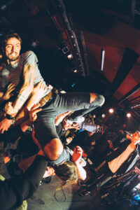 At first glance, you might’ve expected the vibe to stay restrained, almost inward-looking. Instead, the exact opposite happened. Live, Spite House’s songs hit on a whole different level: heavier, thicker, more crushing, but never overwhelming. The emotions are dialed all the way up, like every note suddenly carries extra weight. Max Lajoie, Marc Tremblay, and Nabil Ortega aren’t just playing an opening slot, they own the stage. Bodies are flying everywhere. You’d be hard-pressed to find a bassist who spends that much time airborne. Heads are banging in unison, the pit tightens up, and the entire room belts out “Dying Leaves”, “Gravity”, and “Desert” at the top of their lungs.