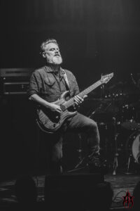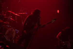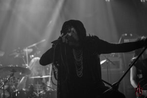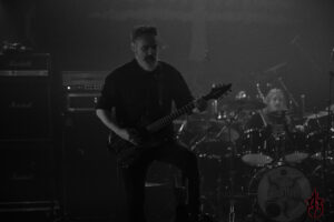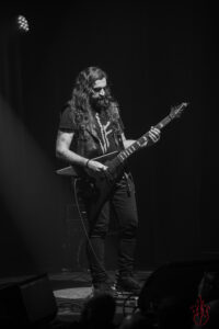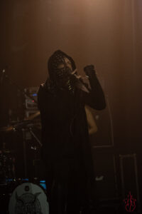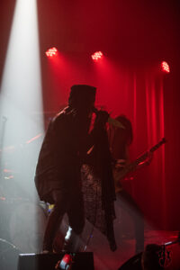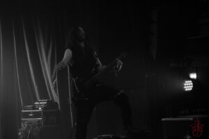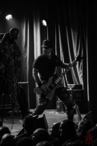 Les morceaux s’enchaînent sans temps mort. La basse et les guitares bougent constamment selon leurs parties, le bassiste headbanguant sans relâche. Le public est désormais plus dense, attentif, réactif. Le chant se déplace, joue avec les musiciens, vient littéralement hanter une guitare pendant un solo.