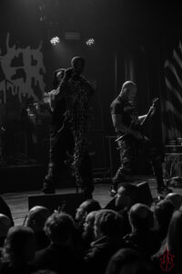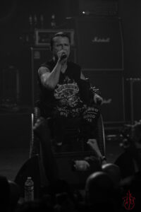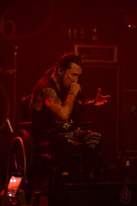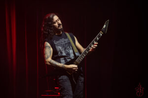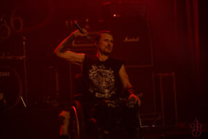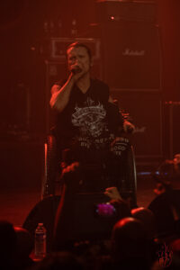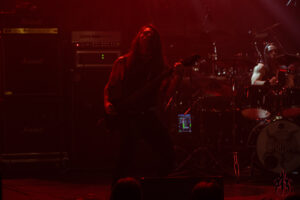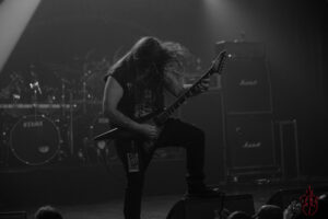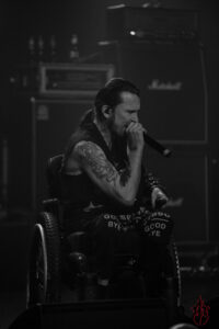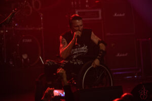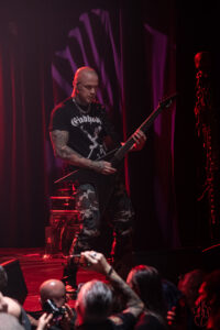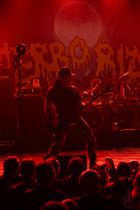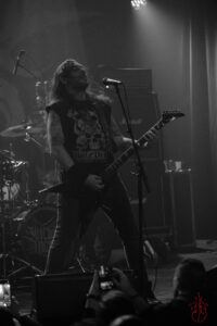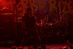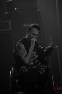 A mic stand decorated with a skeleton and chains sits center stage, no doubt about it, Terrorizer are up next. From the intro, the pit goes nuclear. The first song hits like a wrecking ball. Brian Werner, face painted in dark tones, is completely unhinged, clinging to his mic stand. “Thank you so much, Paris, open this fucking pit!”