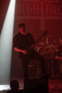 Energy ramps up, the drums start pounding harder, and the first pit warriors emerge. “Are you having a good time? It’s an honor for us, Nightfall, to be part of the Morbidfest tour with such great bands!”