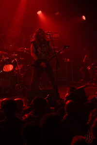 From the very first songs, the band display razor-sharp coordination: synchronized headbanging, majestic passages where the musicians raise their arms as if summoning something even darker. The first two tracks are drenched in deep red lighting, further reinforcing the ritualistic feel of the set.