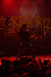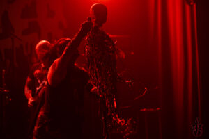 Toujours en mouvement, Brian jette ses gants, détache les chaînes à son poignet, remercie le soundguy. Terrorizer livre un set chaotique, brutal et jubilatoire, laissant la salle exsangue.