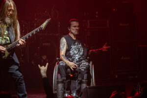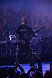 Possessed take the stage to a massive ovation. Jeff Becerra walks out to a hero’s welcome. Two guitars up front, bass near the drums, classic formation. The first two songs feature slightly shaky vocals, but Jeff quickly finds his footing.