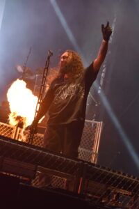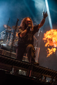 Grandiloquence et brutalité : les Italiens ont débarqué avec leurs costumes baroques et leurs orchestrations extrêmes. Le mélange entre death metal et atmosphères d’opéra a donné un show impressionnant, autant visuellement que musicalement.