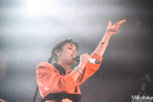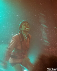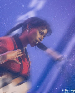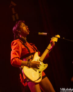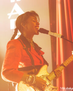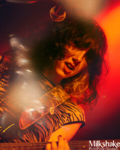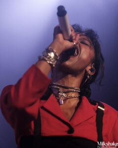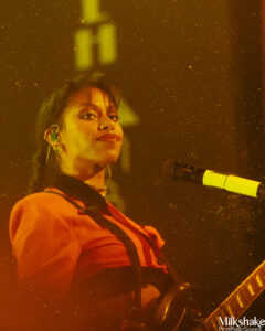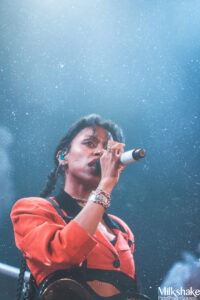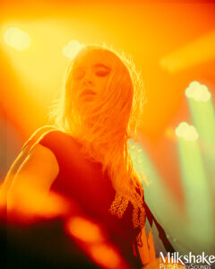 Quand arrive “Change My Name”, la chanteuse annonce fièrement que c’est une nouvelle chanson. Le tempo est plus rapide, super efficace, et le public répond direct. Puis vient “Chip My Teeth for You”, qu’elle introduit avec un grand sourire : « Another one about love », et effectivement, le morceau est une vraie claque, mené par une ligne de basse qui te prend aux tripes.