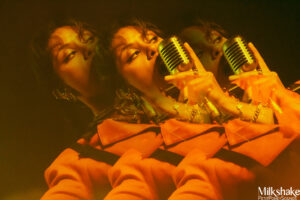 “Parallel Universe” is something else entirely, Amy grabs a vintage ‘60s mic, lets out a feral scream, and the whole venue loses its mind.