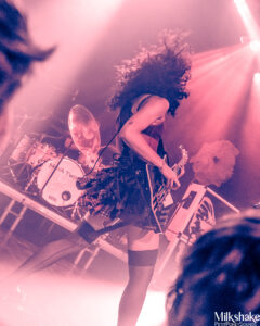 La section rythmique est monstrueuse : sur “Drip”, le batteur assure comme un roc, soutenant les deux musiciennes sans jamais écraser leur folie. L’outro “bounce” fait danser toute la salle.
