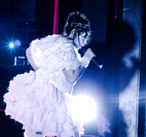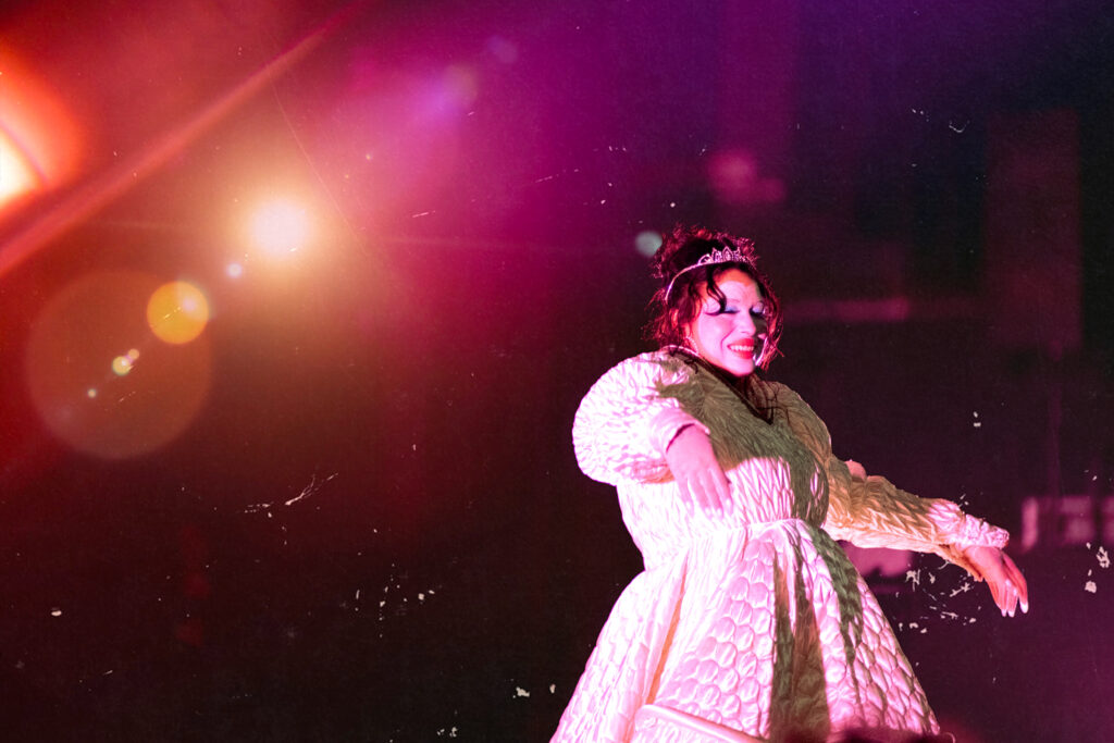 She steps offstage for a moment. While she’s gone, the crowd breaks into Édith Piaf, then a La Femme song, turning the pause into a spontaneous, collective singalong. When she comes back, she’s in a new outfit. Tutu, faux fur, brand-new energy. Drop Dead Gorgeous kicks in and the pit wakes up even harder, jumping, screaming, sweating it out.