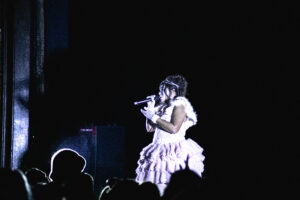 Elle commence avec Matcha Cherry, vibe douce, chill, pleine de tendresse. Elle remercie le public, envoie de l’amour, surtout aux girls, et les cris redoublent. Sur Pink Bronco, l’émotion prend le dessus. Elle parle de sororité, de soutien, de toutes ces années ensemble. Elle chante a cappella, la voix tremble, une larme coule. Moment suspendu, magique, presque intime malgré la foule.