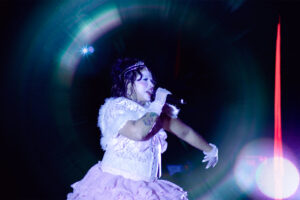 Elle quitte la scène quelques instants. Pendant ce temps, le public chante Édith Piaf, puis un titre de La Femme, comme un interlude collectif improvisé. Quand elle revient, elle a changé de tenue. Tutu, fausse fourrure, nouvelle énergie. Drop Dead Gorgeous démarre et la fosse se réveille encore plus fort, ça saute, ça crie, ça transpire.