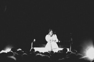 At one point, she raises her glass and shouts, “Girls, girls, girls!” Not a song, just a heartfelt shout-out, and the room answers instantly. There are a few mic issues, she signals the sound engineer, but from where we’re standing, it’s perfect. The emotion is raw, honest, and fully felt.